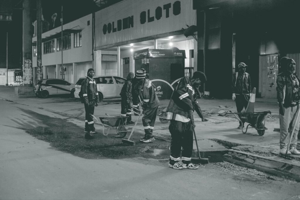 Elle entame sa ronde par l’avenue Mwepu, puis la place de la Poste, Mobutu coin Lumumba, Maniema et Kasaï. En pleine nuit, Joyce Tunda Chansa supervise personnellement les travaux d’assainissement. Des déchets sont enlevés, des caniveaux curés, des artères débarrassées de l’insalubrité. Sous l’éclairage nocturne, les routes reprennent forme, offrant une nouvelle image du centre-ville.